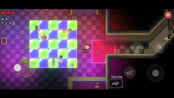 核心围绕随机生成的地牢关卡展开,玩家需逐层深入,清理每个房间的敌人才能解锁通往下一层的入口。战斗中需灵活运用“翻滚”技能(闪躲期间无敌)规避密集弹幕,还可推倒桌子作为临时掩体阻挡子弹,掩体受损后会毁坏,需及时调整战斗位置,考验实时反应与走位技巧。
