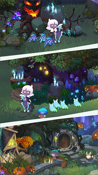 采用色彩明快、细节细腻的像素美术风格,精准还原了充满奇幻感的森林、洞窟、湖泊等场景,搭配温馨舒缓的背景音乐,营造出轻松治愈的整体氛围。骑乘扫帚穿梭林间的灵动画面、与可爱魔法生物互动的场景,以及充满生活气息的女巫小屋布置,都让玩家仿佛真正置身于魔法世界,缓解压力效果拉满。