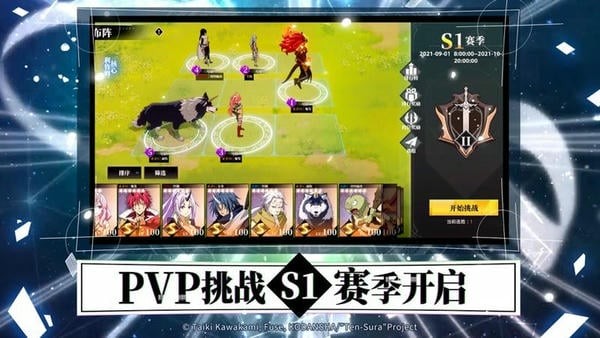 组建5人作战小队(含必选主角利姆鲁),根据属性克制关系(水克火、火克风、风克山)与战斗需求搭配阵容,合理布置阵型确定角色攻击顺序与目标。利用同属性羁绊加成、控制链衔接与技能连招建立战斗优势,挑战主线关卡、秘境讨伐等PVE内容,或参与竞技玩法与其他玩家比拼策略。