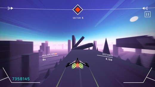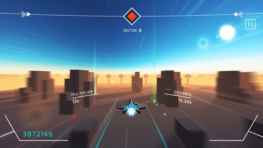 采用极简几何线条画风,以科技感十足的光影特效点缀场景,敌方战机、障碍物与轨道的设计简洁却辨识度拉满,既降低了高速飞行时的视觉干扰,又营造出纯粹的科幻氛围。搭配节奏感极强的动感BGM,飞行音效、射击声与爆炸声精准同步操作节奏,从视觉到听觉全方位强化沉浸感,让玩家全程保持热血状态。