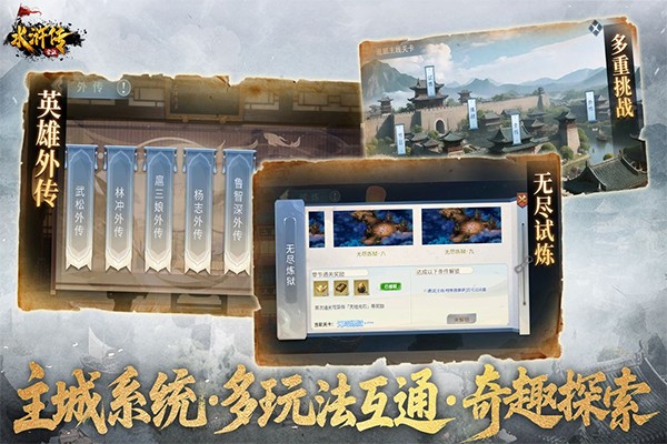 除核心剧情关外,还设有无尽试炼、英雄外传、节日福利关、挑战副本等多样玩法。无尽试炼随层数提升逐步增加难度,是玩家刷取资源、检验阵容实力的核心场景;英雄外传聚焦单个好汉的专属故事,深化角色塑造;定期更新的节日关卡福利丰厚,进一步丰富长线游玩体验。