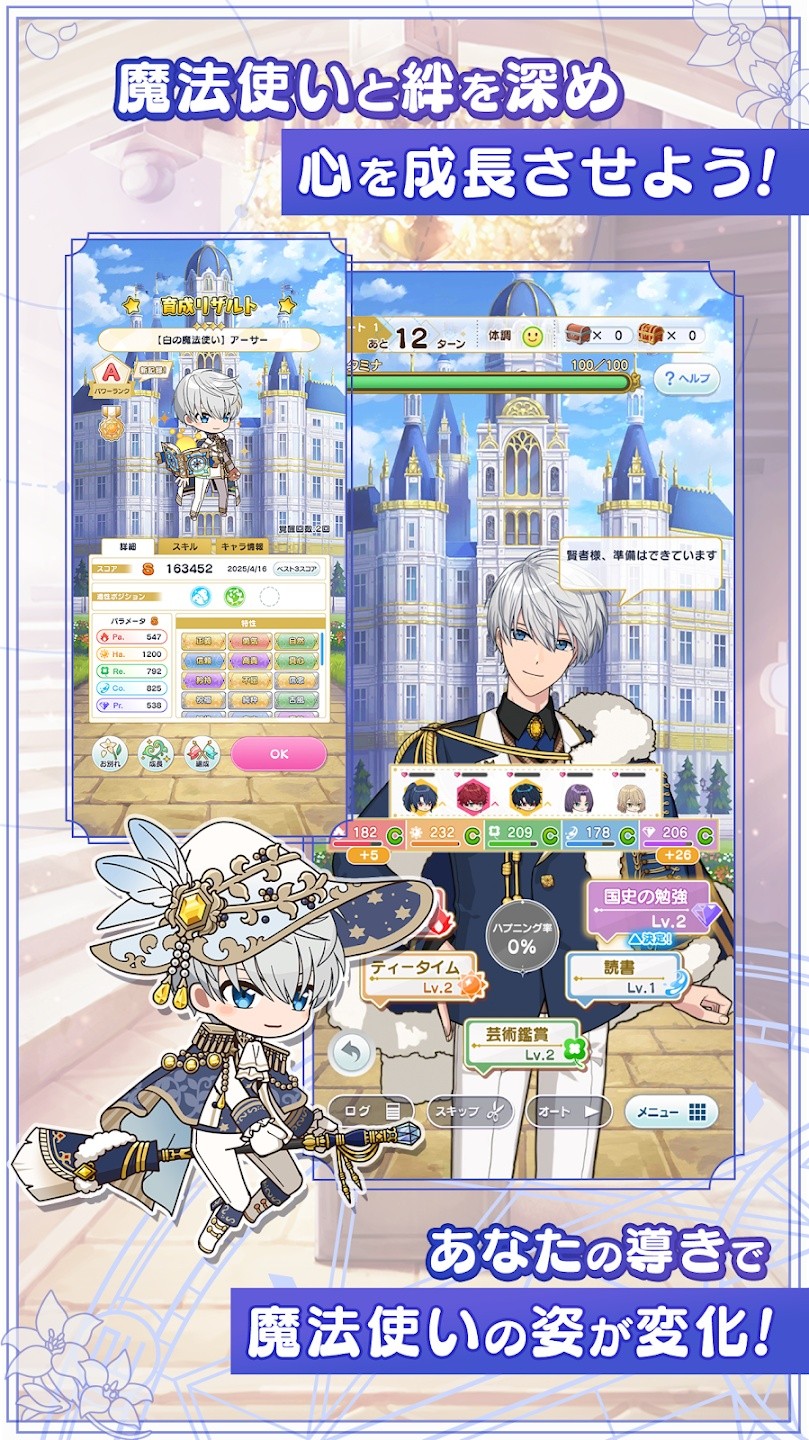 游戏世界包含多个特色区域供玩家探索,每个区域都有独特的历史文化背景与隐藏事件,完成探索任务可获得经验、道具与魔法使好感度。育成地图的选择也极具自由度,不同地图有着专属特色机制——中央城堡适合培养高分角色,西之酒馆易出高属性角色,东之森林可掉落稀有道具,玩家可根据养成目标灵活选择,打造个性化的养成路径。