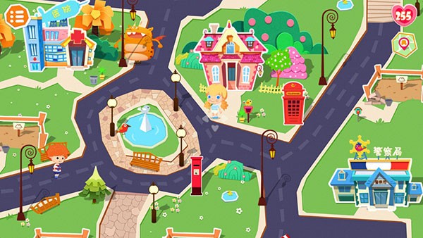 玩家可通过任务积累的爱心,在空地上自由兑换、摆放糖果屋、咖啡馆、摩天轮等各类建筑,打造专属于自己的特色小镇;地标建筑的自由排列组合,充分激发玩家的创意与规划能力。
