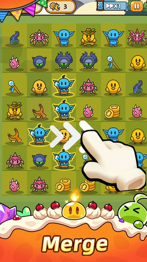 在颠覆传统的怪物守护世界观中,以低门槛三消合成为核心,在有限步数内实现策略布阵与战力升级,感受合成爽感、塔防刺激与Roguelike随机趣味的多重叠加,轻松收获指尖博弈的成就感。