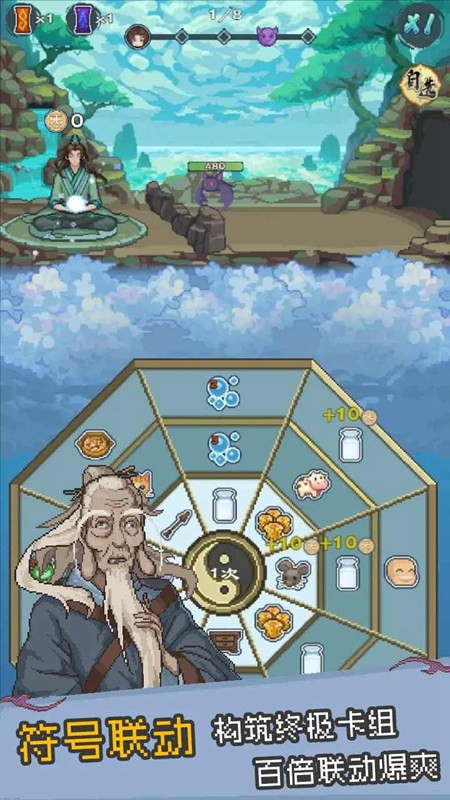 以复古像素风格还原东方玄幻世界,古朴的八卦阵盘、灵动的符号特效,搭配沉浸式音效,营造出既怀旧又玄妙的修仙氛围,让玩家快速沉浸其中。
