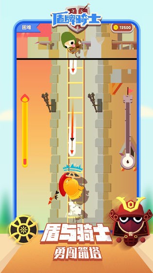 以高塔闯关为基础玩法,玩家需操控骑士沿高塔向上推进,突破箭雨、暗器等阻碍,击败沿途的弓箭手、守卫等敌人,最终登顶击败城堡守卫,成功接管领地。战斗中需精准把握攻防节奏,预判敌人攻击时机,通过举盾防御规避伤害,抓住破绽发起冲锋或连击攻击。