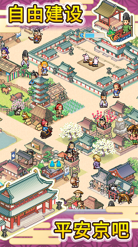 在复古像素的平安时代图景中,以自由规划与多元经营为核心,兼顾轻量化节奏与策略深度,体验从村落养成繁华古都、守护安宁并传承文化的成就感与休闲乐趣。