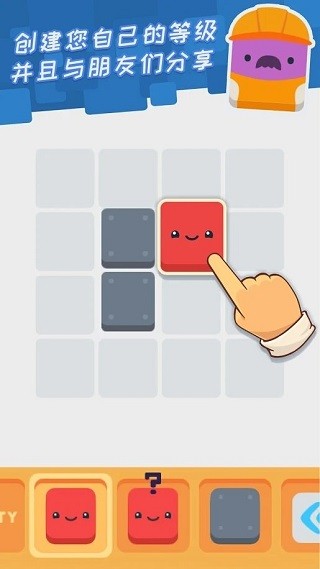 ①解谜闯关模式:核心目标是将彩色方块移动到对应颜色的虚线框内,或通过方块变身(方块状态无视伤害但无法移动,小球状态灵活移动)躲避障碍、收集道具,最终抵达终点。部分关卡需利用场景元素与变身机制的配合,破解机关陷阱