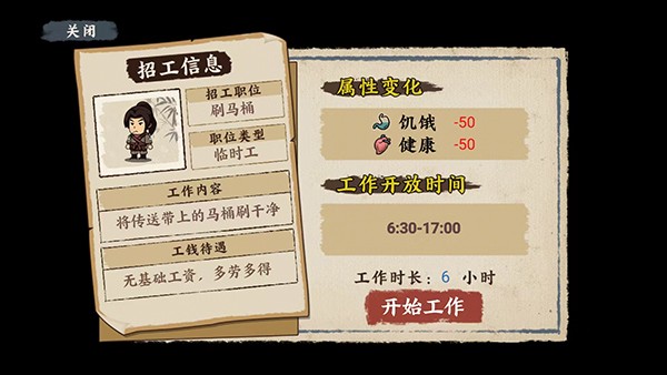 设计众多性格鲜明、有血有肉的NPC角色,既有历史名人,也有市井平民、江湖侠客,每个NPC都有专属的性格与故事线。玩家可与NPC自由交流、结交情谊,甚至拜师学艺、缔结姻缘,NPC的态度会随互动变化,还能触发隐藏任务与专属剧情,让打工之路不再孤单,充满未知惊喜。