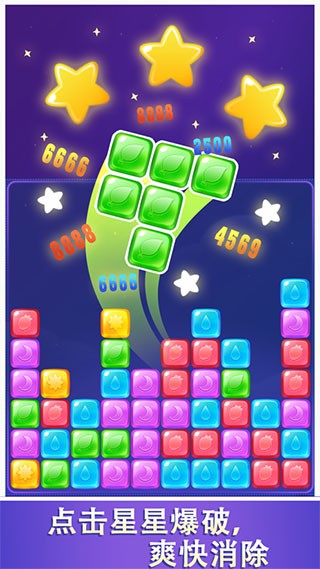 采用高清画质与清新明亮的卡通风格,色彩鲜艳、方块造型可爱,消除时搭配流畅的动画特效与轻快悦耳的背景音乐,不同消除场景还有专属音效,营造出轻松愉悦的游戏氛围,帮助玩家快速释放压力、放松心情。