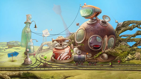 游戏画面由艺术家完全手绘完成,色彩明亮柔和,细节精致如连环画。从齿轮车间到热带雨林,每个场景都充满蒸汽朋克与幻想艺术的融合感,修复电力后场景光源的变化更带来视觉上的动态惊喜。这种如绘本般的美术风格,让玩家仿佛置身于一个被温柔讲述的故事中。