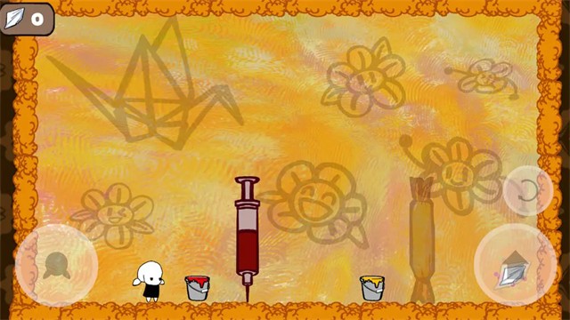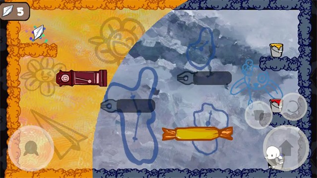 游戏采用虚拟摇杆或点击操作控制小女孩移动。屏幕底部通常设有红、黄、蓝三色画笔按钮。玩家需要根据场景需求切换画笔,点击场景中的特定物体(如颜料桶、开关或墙壁)进行“上色”或“涂抹”。例如,用红色画笔点燃熄灭的火把以融化冰块,或用黄色画笔照亮黑暗的通道以显现隐藏的道路。需要注意的是,部分关卡对画笔的使用次数有限制,需要合理规划。