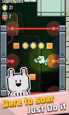 在闯关过程中,玩家可以收集散落在空中的金币或胡萝卜等道具。这些资源主要用于在商店中解锁新的小鸟皮肤或装饰性羽毛。虽然外观变化不提供任何属性加成,但却是玩家辛勤付出的象征。此外,部分版本中还引入了“幽灵模式”或“决斗系统”,玩家可以与好友的录像进行同步对战,或者在特定的多人服务器中与其他玩家实时比拼,看谁能在同样的关卡中飞得更远。