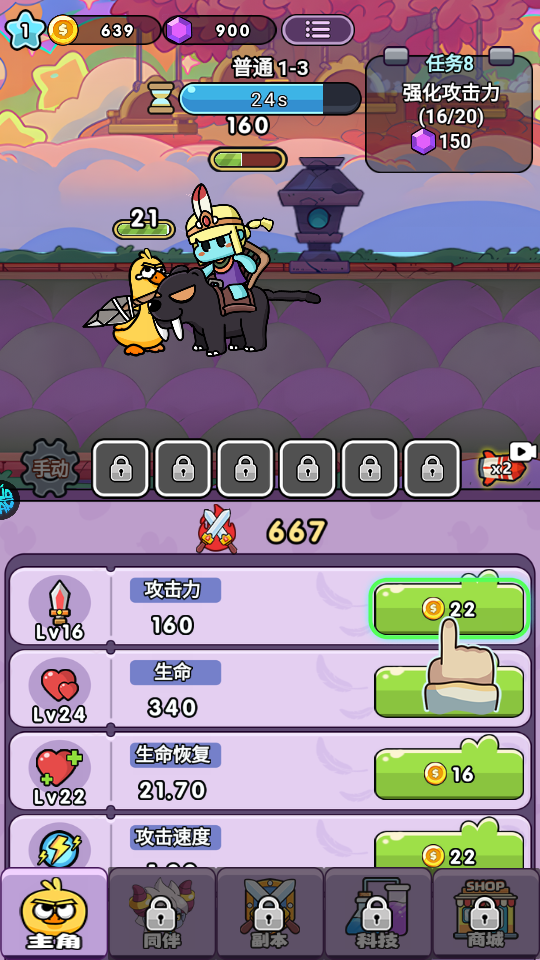 手动闯关与放置挂机 为了满足不同玩家的需求,游戏巧妙地融合了两种截然不同的玩法模式。