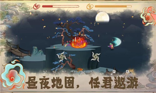 每局游戏的目标通常是在规定时间内击败特定的BOSS(如妖皇)。BOSS拥有高额的血量和复杂的攻击模式。在挑战前,建议先通过小怪积累一定的技能层数。战斗中,不要盲目贪刀,要时刻注意BOSS的攻击前摇,利用翻滚或地形进行躲避。由于游戏支持“跳崖”重置位置,如果在战斗中陷入包围或状态不佳,可以果断利用地形机制进行脱战和回血,保持健康的血量是通关的首要前提。