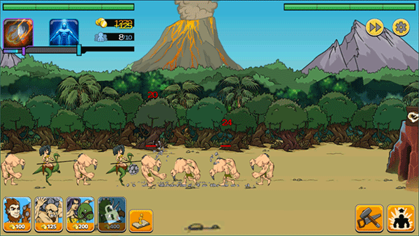 游戏的进程由“经验值”驱动。为了进入下一时代,玩家需要积累足够的经验值,而这通常通过击杀敌方单位来实现。随着时代的推进,玩家将解锁更高级的兵种和防御塔。例如,在石器时代,你只能建造投石兵和棒槌男;而到了未来时代,则可以部署机甲战士和激光炮塔。在升级时代时,玩家需要谨慎规划资源,因为高级兵种虽然强大,但造价昂贵。通常建议在拥有足够的金币储备后再进行时代升级,以免在转型期因兵力真空而被对手压制。