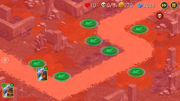 游戏最核心的亮点在于将卡牌元素与塔防玩法进行了深度结合。传统的防御塔在这里化身为一张张拥有独特属性的卡牌,包括战士、弓箭手、法师等兵种。你需要通过收集和搭配这些卡牌来构建你的防御体系。这种设计不仅增加了游戏的收集乐趣,更将策略维度从单纯的“摆放位置”延伸到了“卡组构筑”上,不同的卡牌组合能产生意想不到的化学反应,极大地丰富了玩法的深度。