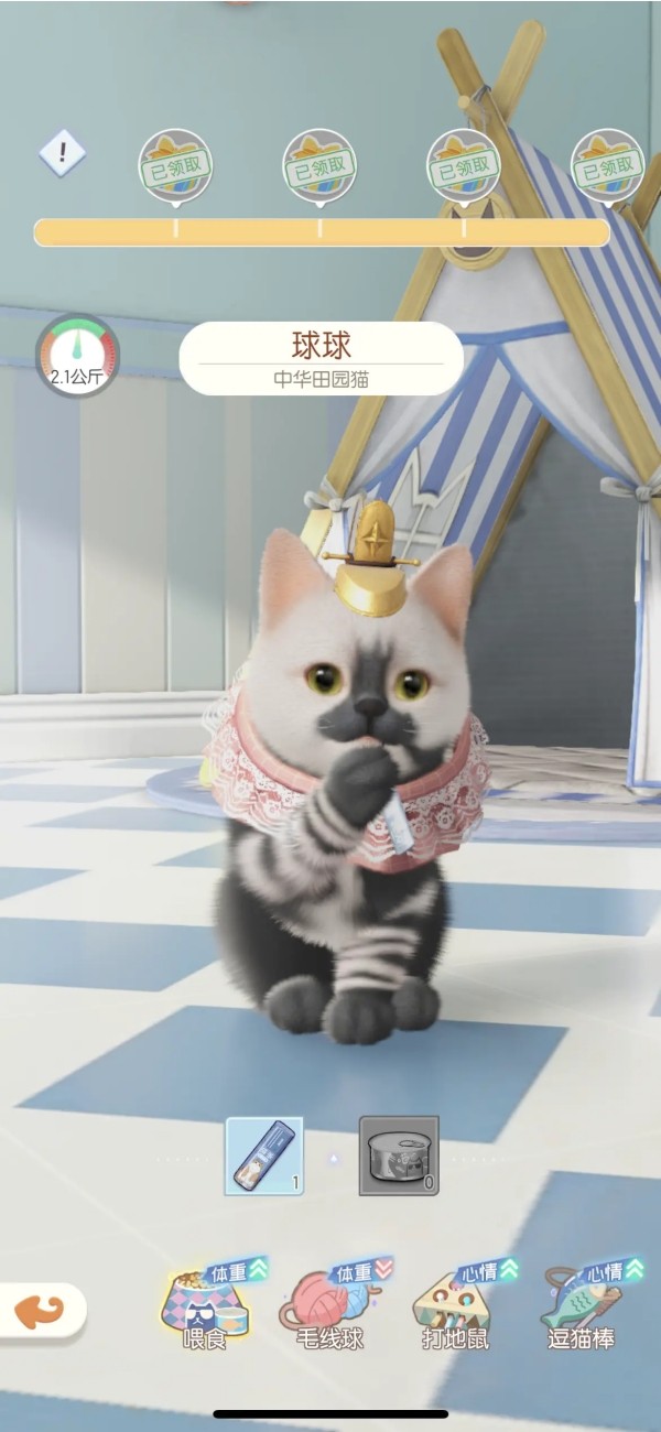 玩家需要像真正的铲屎官一样,时刻关注猫咪的状态。通过简单的点击操作,可以为猫咪喂食、清洁、梳理毛发,维持它的饱腹度、清洁度和健康值。此外,游戏还设计了多种互动玩具,如经典的激光笔、打地鼠游戏等,通过与猫咪玩耍,不仅能提升它的心情值,还能有效增加彼此的好感度,解锁更多亲密互动动作。