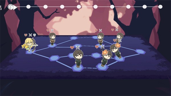 游戏的基础战斗发生在方格化的棋盘上。玩家需要在战斗前或战斗中通过移动棋子来调整阵型。战斗的移动机制借鉴了跳棋的规则,棋子可以通过跳跃的方式移动到更远的位置,这种机制使得战场的控制范围大大增加。在战斗中,你需要根据敌人的位置和行动力,灵活地调整自己的战术。例如,利用跳跃移动将脆皮的远程单位转移到安全的位置,或者将高防御的坦克单位快速移动到前线阻挡敌人的进攻。拥有射程的棋子在有可攻击目标时不会移动,射程计算依横向距离,这种设计让远程输出的站位选择变得尤为重要。