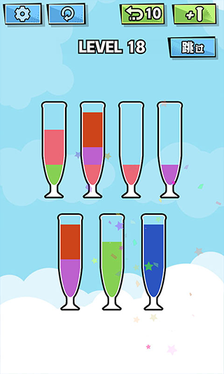 在闯关过程中,玩家会遇到各种特殊机关,这要求玩家灵活调整策略。例如,面对“冷冻”机关,玩家可以将不需要的液体暂时冻成冰块,从而腾出整个试管的空间来处理其他颜色;或者利用“蒸发”机制,让特定液体变成蒸汽通过专用管道传输到指定位置。在有“颜色过滤器”的关卡中,只有特定颜色的液体能通过滤网,这就需要玩家精心规划液体的流动路径。这些机关的引入,使得解谜过程不再是机械的重复,而是充满了变数与惊喜,每一次成功利用机关巧妙过关,都会带来巨大的成就感。