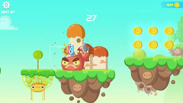 虽然操作简单,但高阶玩法对技巧要求极高。由于关卡是随机生成的,玩家必须具备快速的路线规划能力。在跳跃前,需要迅速观察下一个平台的位置、距离以及是否有移动障碍物。特别是在面对移动平台或变速旋转的机关时,需要极佳的预判能力,把握好起跳的瞬间。此外,利用角色的弹性特性,可以在特定的弹簧板或斜坡上实现更远距离的跳跃。在战斗方面,不同类型的敌人有不同的攻击模式,玩家需要通过观察,找到其攻击间隙进行反击,或者利用地形优势(如将敌人引至悬崖边推下)来化险为夷。