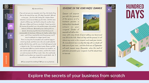 游戏提供了三种截然不同的游戏模式,以满足不同玩家的需求。故事模式以开发者家族的真实经历为蓝本,通过20个章节的任务,引导新手玩家逐步掌握酿酒的门道;无尽模式则是一个自由的沙盒,你可以按照自己的节奏扩张庄园,没有强制目标,专注于酿造与经营;挑战模式则适合资深玩家,你需要在限定条件下(如特定原料、限定时间)完成高难度的酿造任务。配合4K画质呈现的四季变换葡萄园景观和轻柔的背景音乐,游戏营造出了一种既治愈又充满挑战的沉浸式氛围。