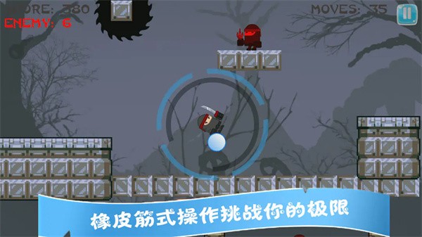 游戏最大的特色在于其颠覆传统的操作方式——“橡皮筋式”弹射操控。摒弃了虚拟摇杆与按键的常规组合,游戏将核心操作简化为“按住-拖拽-释放”这一连贯动作。玩家需要按住屏幕上的忍者角色,此时角色会像被橡皮筋拉住一样产生形变,拖拽的方向与距离决定了弹射的力度与角度。这种操作模式极大地增加了游戏的物理反馈感与操作深度,每一次弹射都需要玩家精确预判落点与轨迹。它不仅是对反应速度的考验,更是对空间想象力的挑战,让每一次移动与攻击都充满了策略性与技巧性。