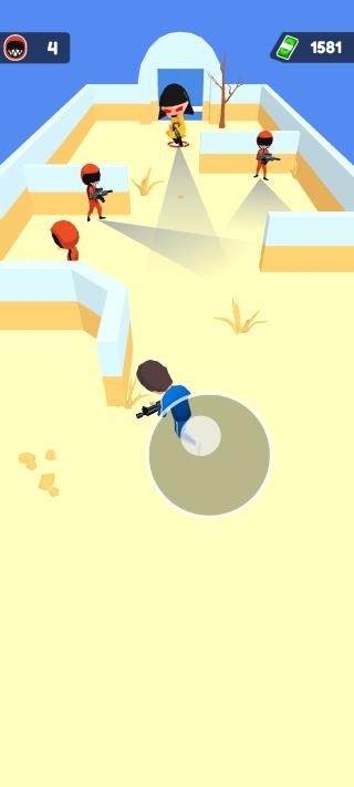 每一关的最终目标都是“存活并淘汰所有敌人”。在屏幕的左上角或右上角,通常会显示当前的敌人剩余数量。你需要利用上述的潜行、射击和地形利用技巧,逐一清除地图上的所有威胁。在战斗收尾阶段,系统可能会开启通往下一关的“橙色门”或出口。在清理完所有敌人后,控制角色向出口移动即可通关。部分关卡可能设有特殊的触发机制,如需要击败特定的彩色方块旁的敌人来解锁大门。无论遇到何种情况,保持冷静,利用掩体规避伤害,并时刻关注地图上的任务指引,是顺利通关的关键。
