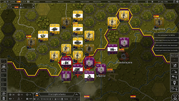 内置50 + 政策与理论系统,可定制军事战术、占领策略、征兵规则等,自由开关战争迷雾、补给线、控制区等机制,适配不同玩法风格。加入外交系统,可结盟、宣战、谈判休战,战略选择直接影响战局走向;支持单位养成,部队随战役推进解锁特长,提升作战能力。