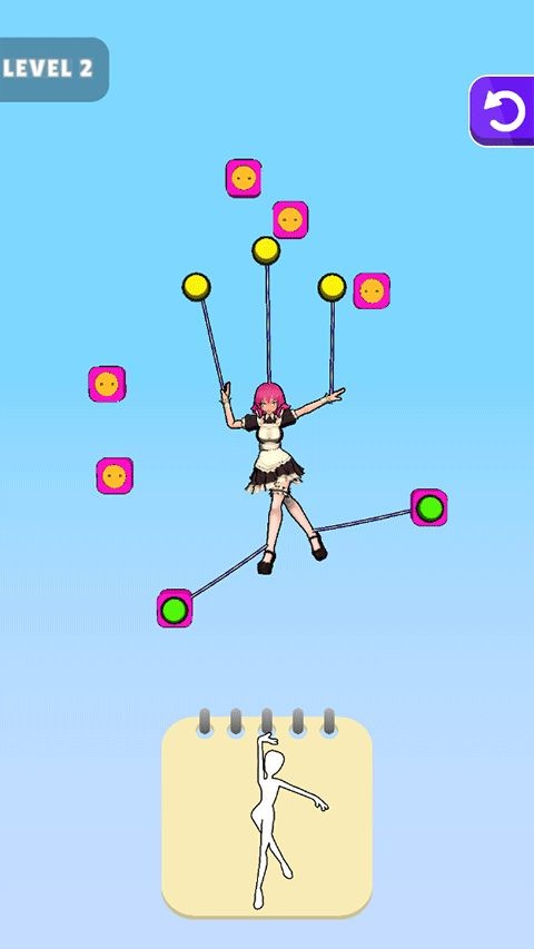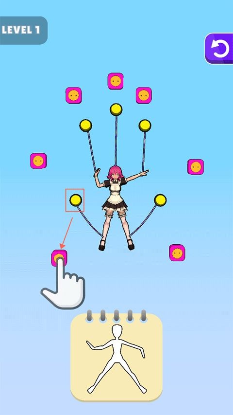 游戏的基础操作在于“操控”。在部分关卡中,玩家需要扮演提线木偶师,通过屏幕下方的示例图片,将木偶的关节与提线进行正确的连接。这需要玩家具备敏锐的观察力和空间想象力,仔细观察连接点和线条走向是成功的关键。当连线正确时,按钮会显示绿色,全部连接正确即可通关。而在附身模式下,玩家则需要通过虚拟摇杆或手势滑动,精准控制被附身者的移动和动作。这种操作看似简单,但要做出流畅、自然且符合恶作剧需求的动作,仍需玩家进行大量的练习和摸索。