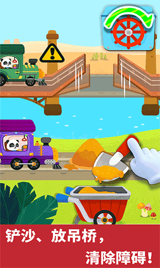 旅途并非一帆风顺,游戏在路线上设置了丰富的互动机关与障碍。当遇到铁轨上有沙石时,玩家需要点击铲子工具进行清理;遇到断桥时,需操作机关放下吊桥;遇到铁轨松动,则需使用工具进行修复。每一个障碍都是一个小型的解谜游戏,玩家需要观察障碍物的特性,选择正确的工具和方法进行处理。只有成功解决所有路障,火车才能继续前行。这一玩法极大地提升了游戏的可玩性与挑战性,让孩子在一次次“排障”中建立起战胜困难的自信心,并学会运用逻辑思维去分析并解决实际问题。