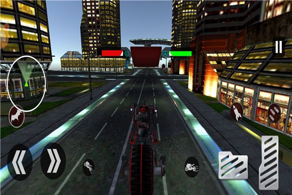 移动控制:屏幕左侧为方向控制区。在机车形态下,控制车辆的转向;在蝙蝠形态下,则控制飞行的方向,支持360度全方位自由移动。