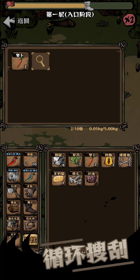 探索与搜刮:进入随机生成的草原地图,探索废弃营地、补给据点等区域,搜寻散落的装备、武器和珍贵物资。地图中还可能隐藏着通往更危险但也更富饶的子地图(如浆果园)的入口。