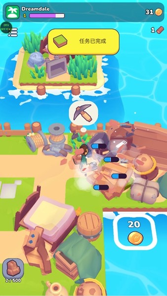 资源采集:每种资源的获取都需要对应的专业工具。游戏初期,你只有一把斧头,可以砍伐树木获取木材。随着游戏进程,你将解锁镐、铲、鱼竿等更多工具,用于开采石头、挖掘宝藏和钓鱼。