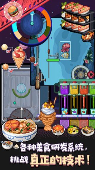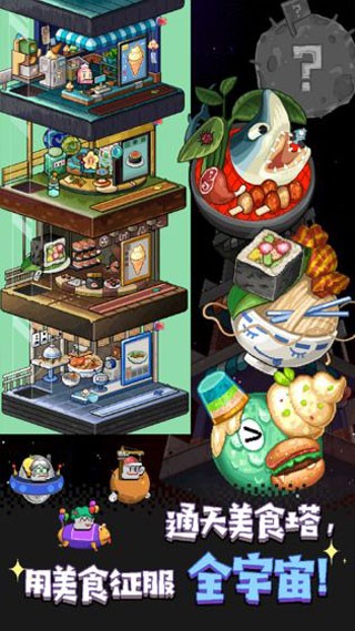 在美术表现上,游戏采用了高清Q萌的像素画风,既保留了复古游戏的怀旧感,又融入了现代设计的细腻。每一个像素点都经过精心打磨,无论是食物冒着热气的诱人模样,还是外星店长们滑稽夸张的表情动作,都刻画得栩栩如生。特别是当玩家解锁新星球时,背景从蓝天白云逐渐过渡到浩瀚星空、异星地貌,这种视觉上的渐变与演进,极大地增强了游戏的沉浸感。