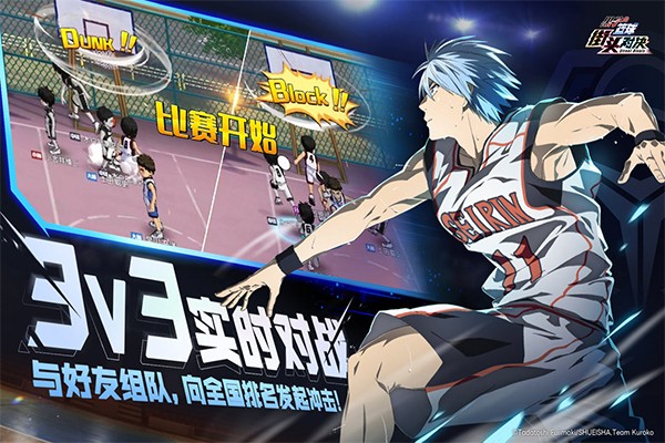 黑子的篮球街头对决是一款体育竞技类游戏。在游戏中,玩家不再是观看动画中那些令人血脉贲张的比赛,而是化身为球场上的指挥官,亲手操作黑子哲也、火神大我以及“奇迹的世代”等一众经典角色,在3V3的街头赛场上展开即时对决。它忠实地还原了原作的世界观,从诚凛高中的初出茅庐,到与各大豪强学校的宿命交锋,玩家可以在游戏中重温那段关于篮球、友情与成长的青春热血。在这里,每一个角色都拥有独特的技能树和成长路径,每一次传球、突破和灌篮都充满了策略与操作的博弈,让玩家在每一次对局中都能感受到“团队配合大于个人英雄主义”的竞技理念。