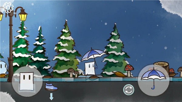 游戏采用经典的双摇杆设计。左下角的摇杆控制主角的左右移动,右下角的摇杆控制雨伞的方向。玩家需要同时操作两个摇杆,既要控制主角前进,又要时刻调整雨伞角度来抵挡来自不同方向的雨水。这种操作方式虽然简单,但需要玩家具备一定的协调性和预判能力。
