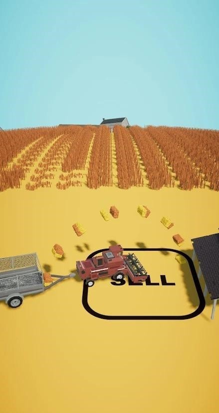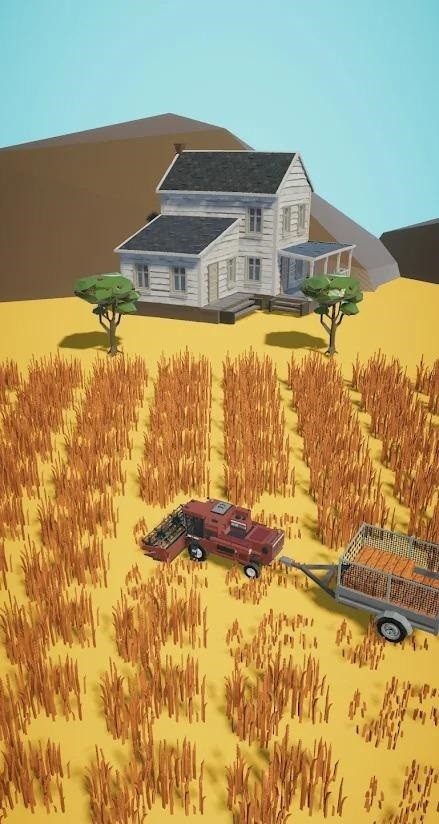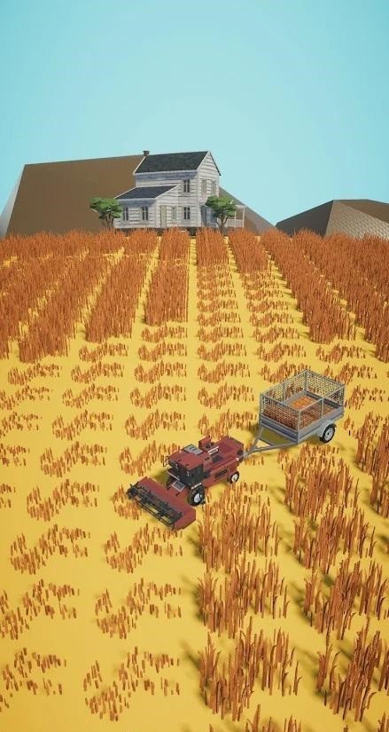 1、极简的游戏画风,随意滑动屏幕,控制收割机进入农场开始收割;