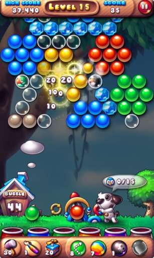 3、通过弹出和落下来拍摄泡泡和匹配颜色来解救被困的小鸟!