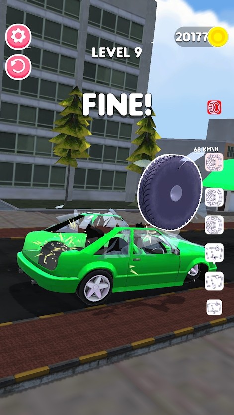 你在投掷轮胎的时候需要瞄准,你的准心是能够计算分数的,如果你一招解决一辆车的话就会给你评判完美分数。