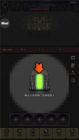 1、通过点击怪物门可以召唤不同属性的怪物
