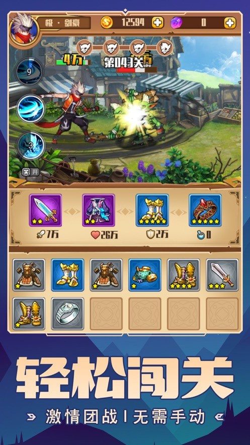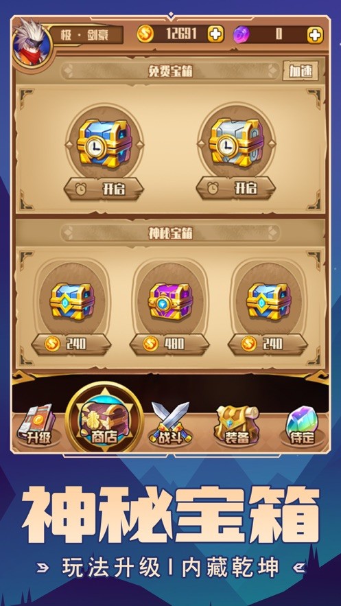 1、使用不同类型的装备武装您的英雄,提升战力,伤害爆表!