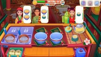 2、在这里制作出更多美味的食物来吸引大量的食客,你会拥有丰厚的奖励来升级自己的餐厅;