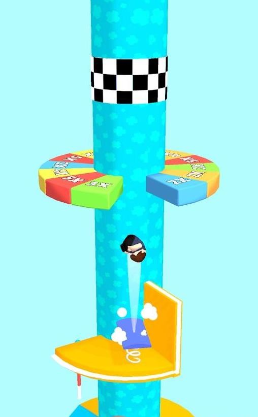 1、玩法简单,左右滑动屏幕控制塔的转动,接住跳上去的角色,继续向上;