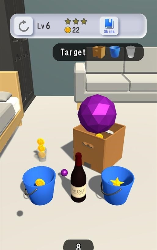 1、多种游戏道具设定,不同的容器难度不等;