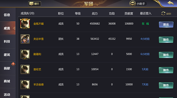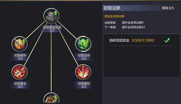 由工会会长消耗军团资金,即可使军团科技升级。并提升对应的属性。