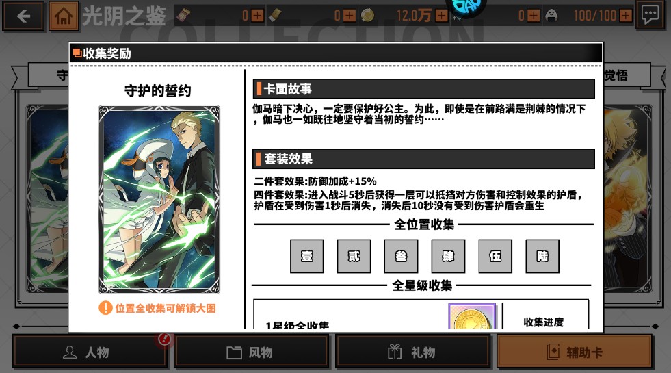 四件套效果:进入战斗5秒后获得一层可以抵挡对方伤害和控制效果的护盾,护盾在受到伤害1秒后消失,消失后10秒没有受到伤害护盾会重生