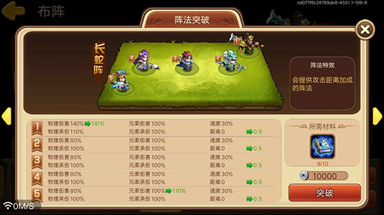 阵法可以进行升级,一些阵法升级后可获得物理或元素伤害加成以及阵法特效。而长蛇阵在升级后的阵法特效可以额外增加距离0.5距离,这一点较其他阵法是有一些优势的。
