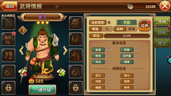 1.游戏内玩家可以招募许多三国名将,通过不断升级培养成强力战将。
