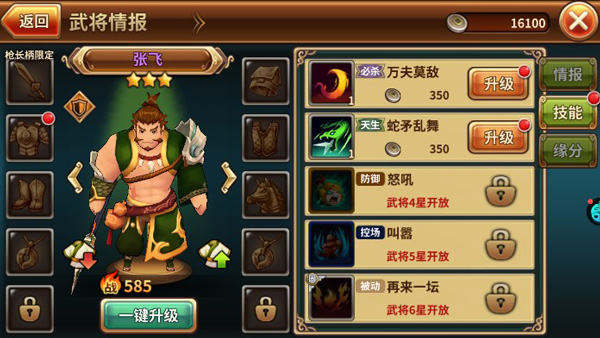 虽然阵容确定下来了,但是武将固然是有一个提升顺序的。在获得关羽前,资源尽可能给主角和张飞,在常山树林有任务可以再获得一名张飞。此时玩家应该也攒下了不少的虎星徽章,建议对张飞进行升星。升星后的张飞会获得减伤类技能,与高治疗量搭配能挡下更多的伤害。等到第二天获得关羽后,将大部分的资源用于提升关羽,这样一来整个队伍的坦度和输出都足够了。